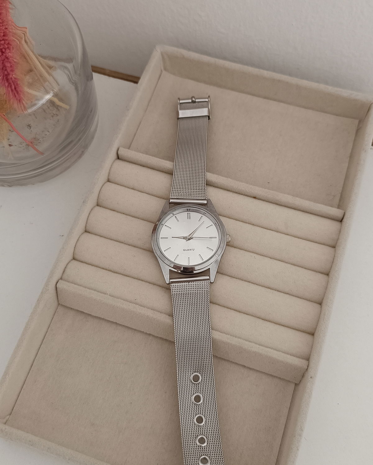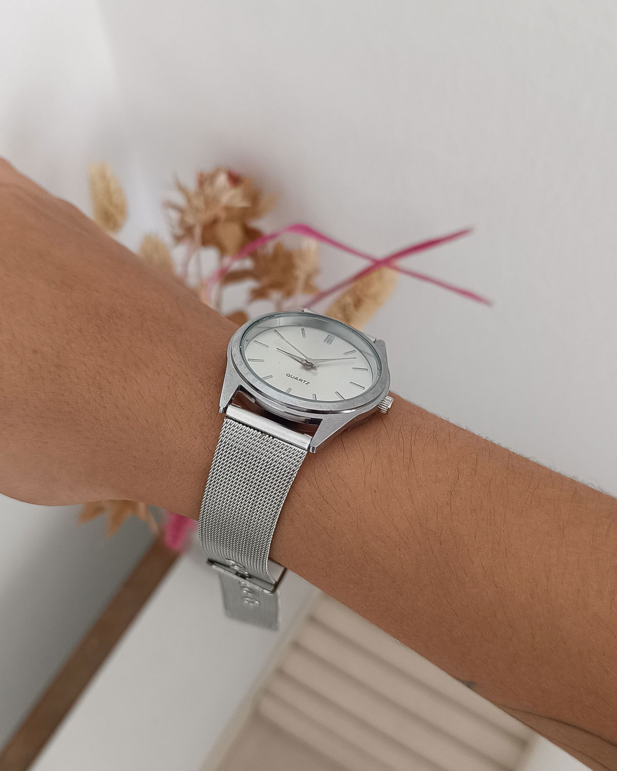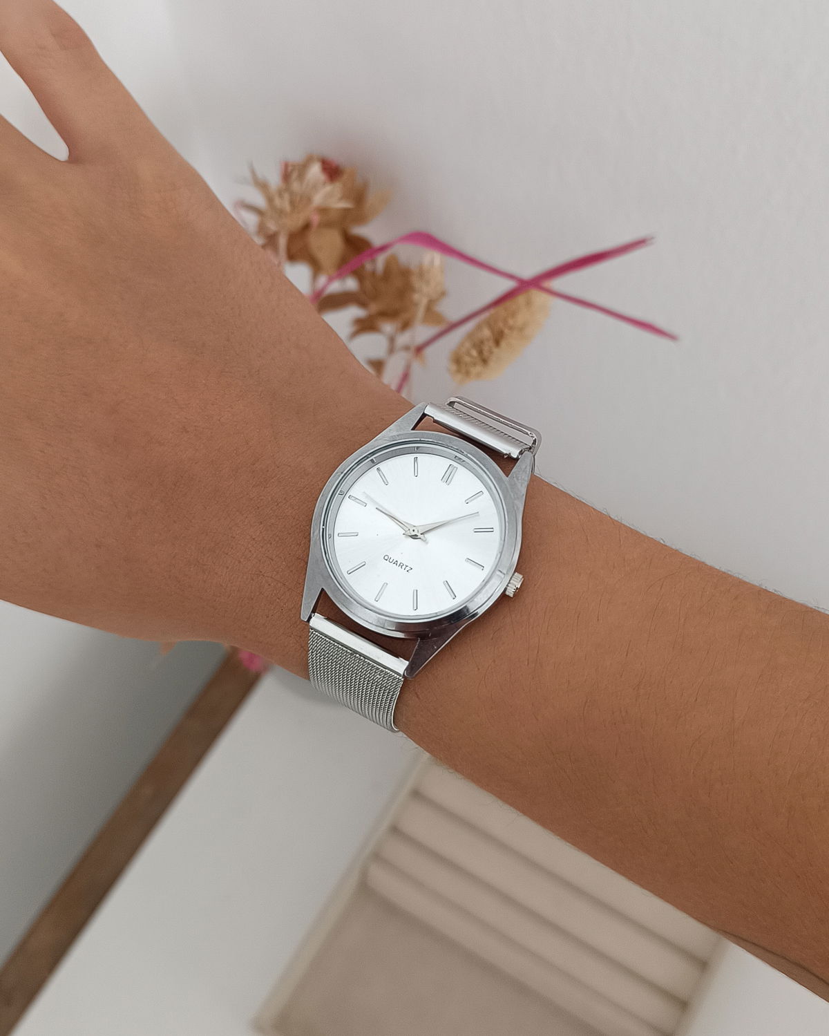 Reloj con malla metálica plateada
